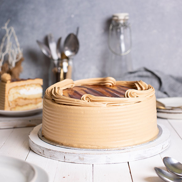 Indulge in the rich and comforting flavors of our Vanilla Toffee Cake, a perfect blend of elegance and sweetness. This delightful creation features moist layers of vanilla sponge, generously filled and topped with luscious toffee sauce that melts in your mouth.